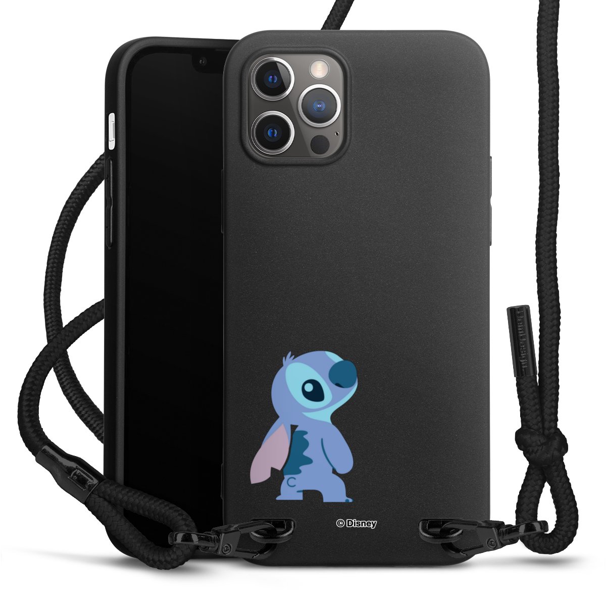 Pure Black: Handyhülle, Stoffband und Metalldetails in stylischem Mattschwarz.
