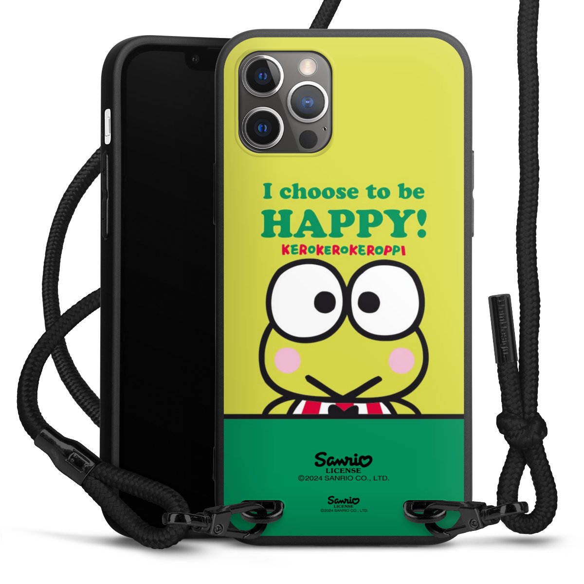 Pure Black: Handyhülle, Stoffband und Metalldetails in stylischem Mattschwarz.