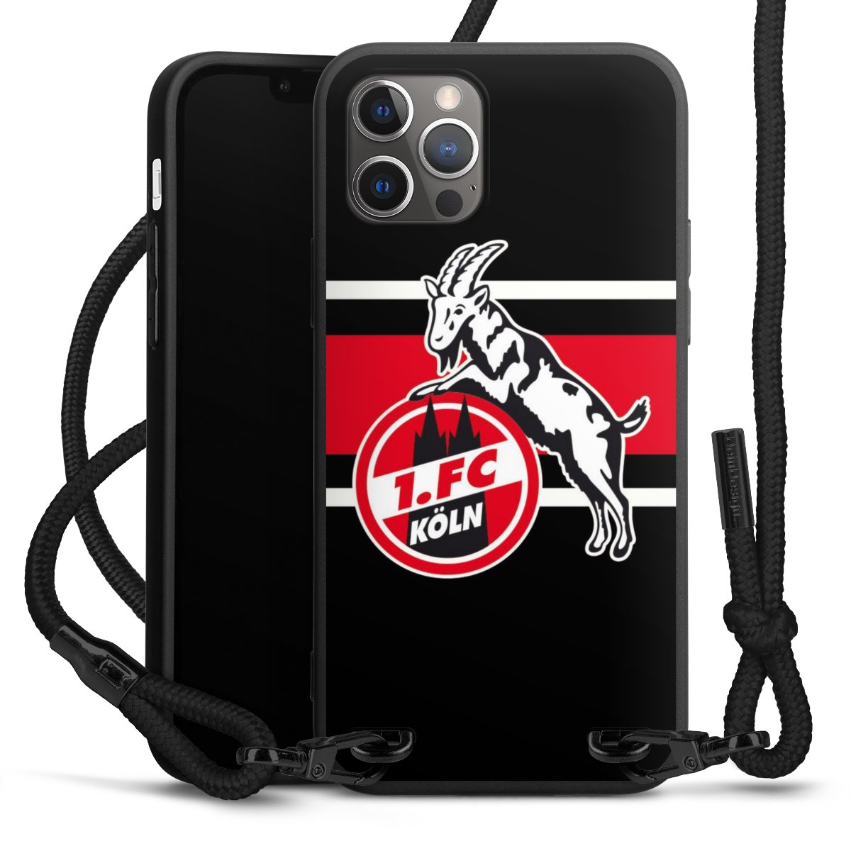 Pure Black: Handyhülle, Stoffband und Metalldetails in stylischem Mattschwarz.