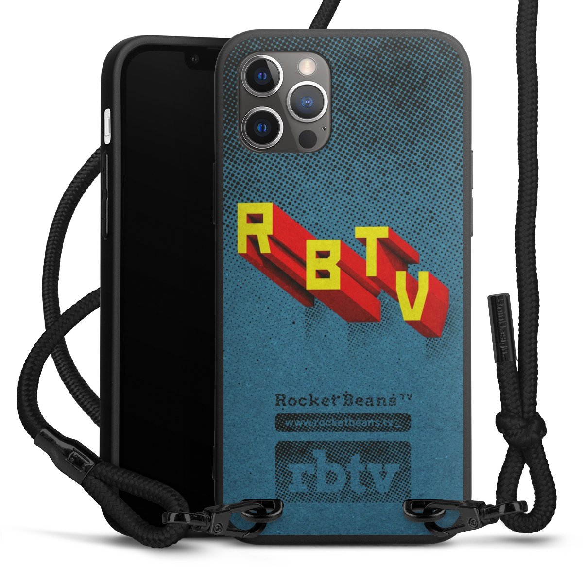 Pure Black: Handyhülle, Stoffband und Metalldetails in stylischem Mattschwarz.
