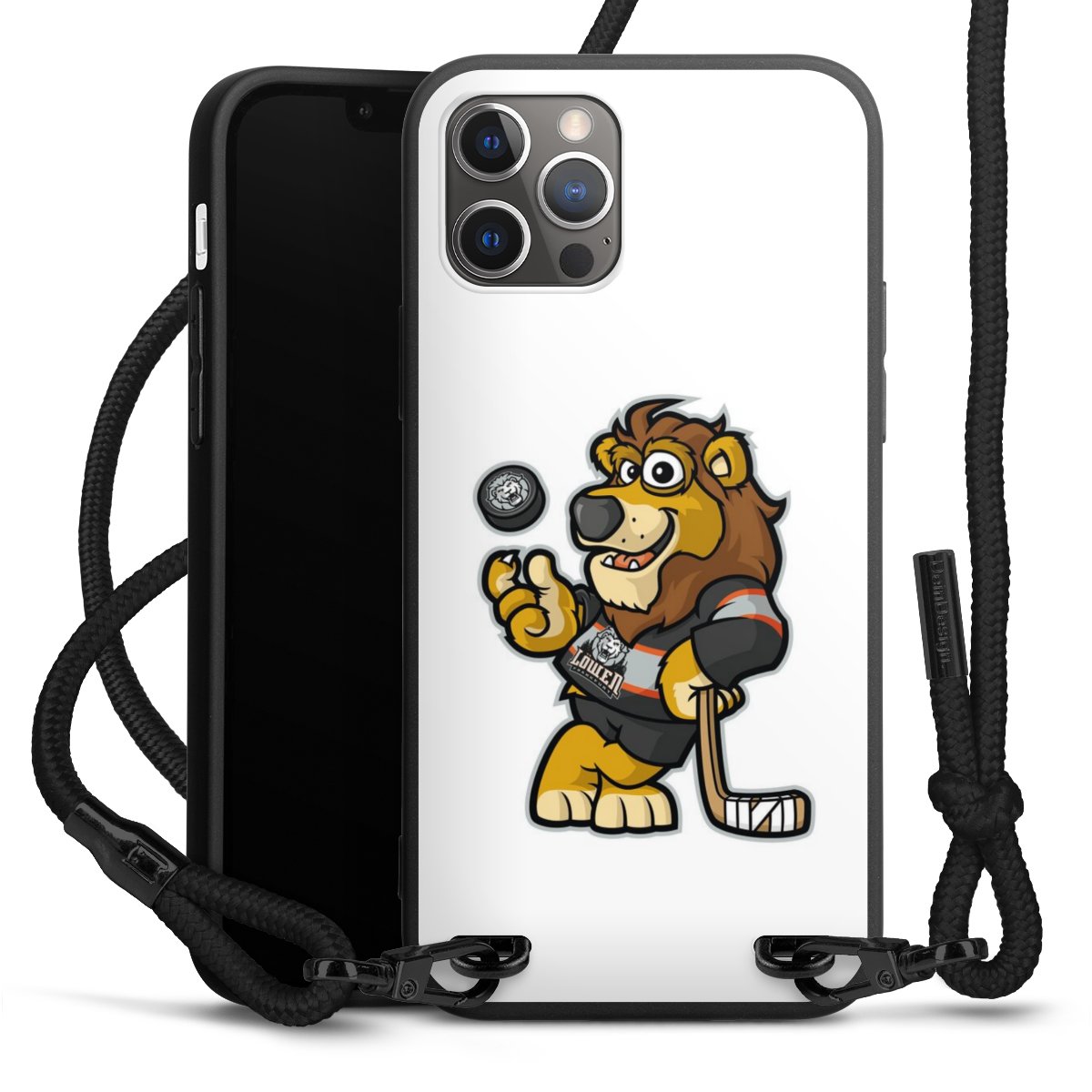 Pure Black: Handyhülle, Stoffband und Metalldetails in stylischem Mattschwarz.