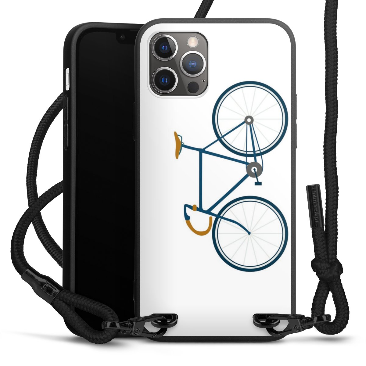 Pure Black: Handyhülle, Stoffband und Metalldetails in stylischem Mattschwarz.