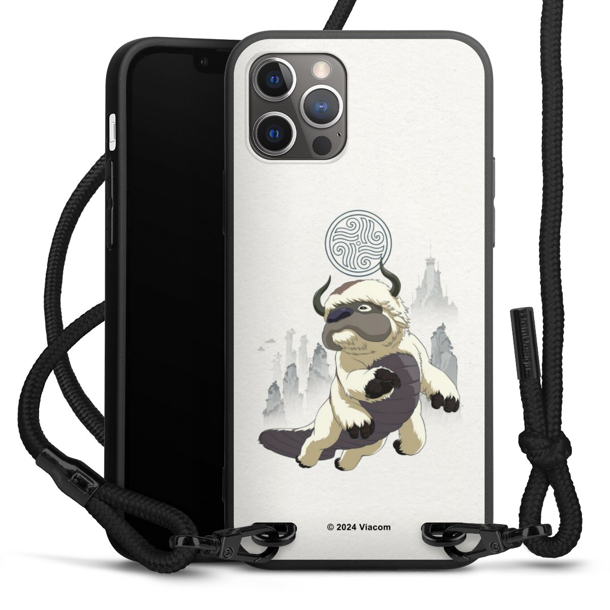 Pure Black: Handyhülle, Stoffband und Metalldetails in stylischem Mattschwarz.