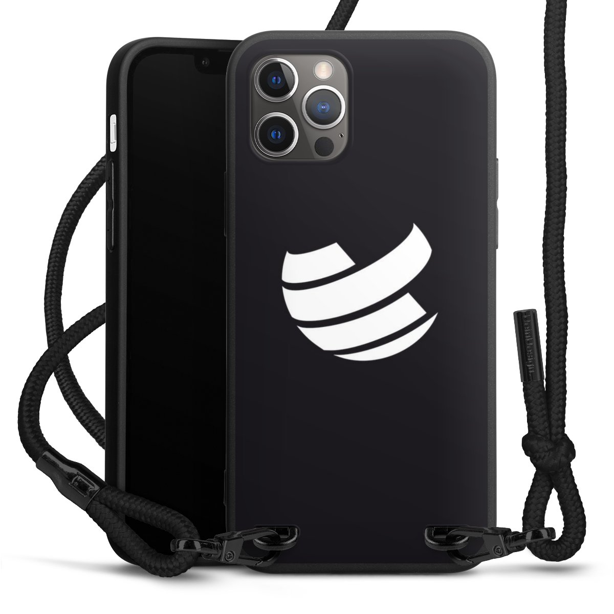 Pure Black: Handyhülle, Stoffband und Metalldetails in stylischem Mattschwarz.
