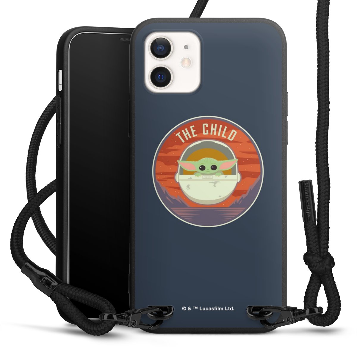 Pure Black: Handyhülle, Stoffband und Metalldetails in stylischem Mattschwarz.