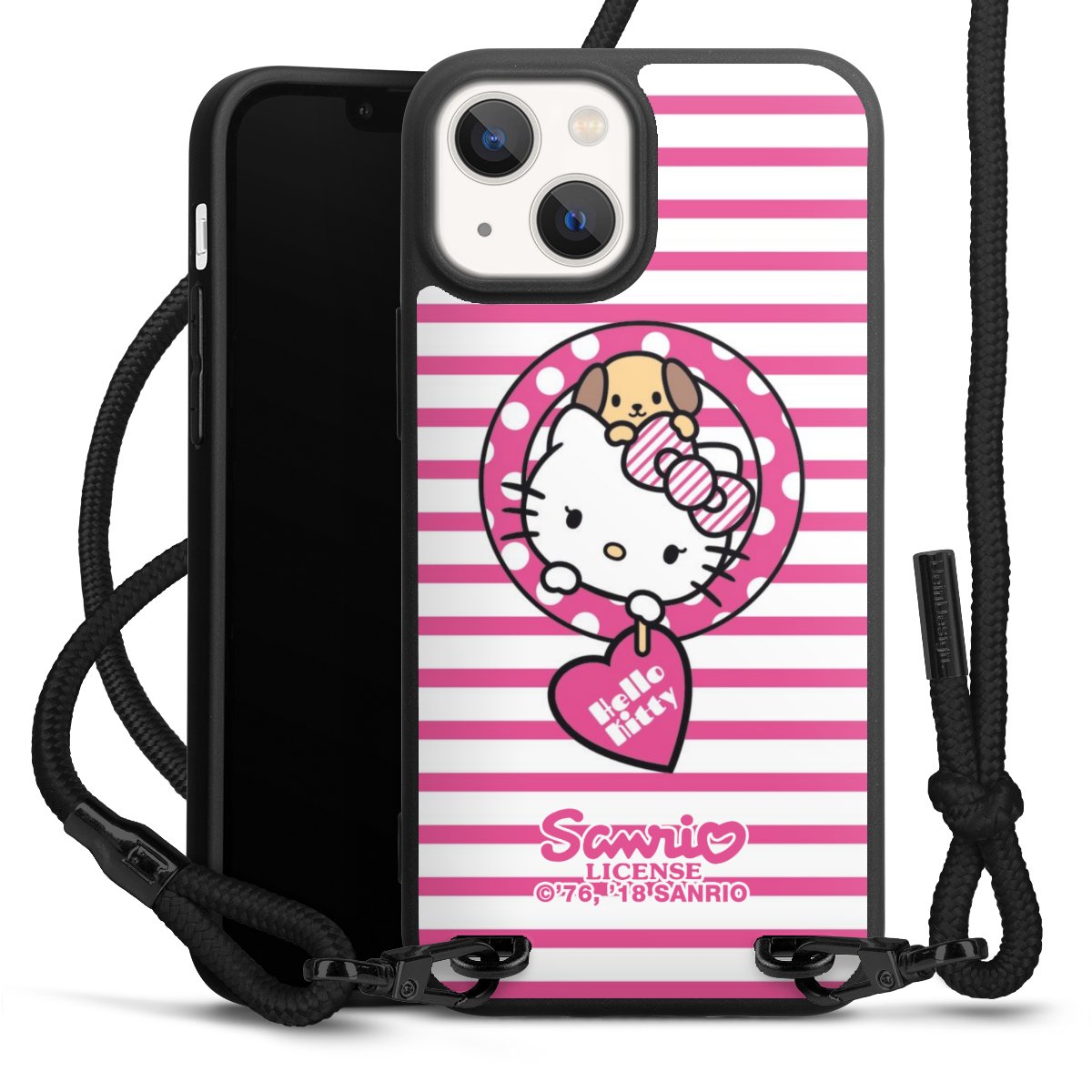 Pure Black: Handyhülle, Stoffband und Metalldetails in stylischem Mattschwarz.