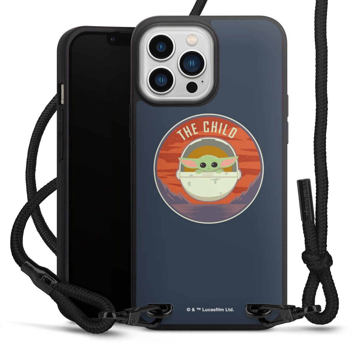 Pure Black: Handyhülle, Stoffband und Metalldetails in stylischem Mattschwarz.