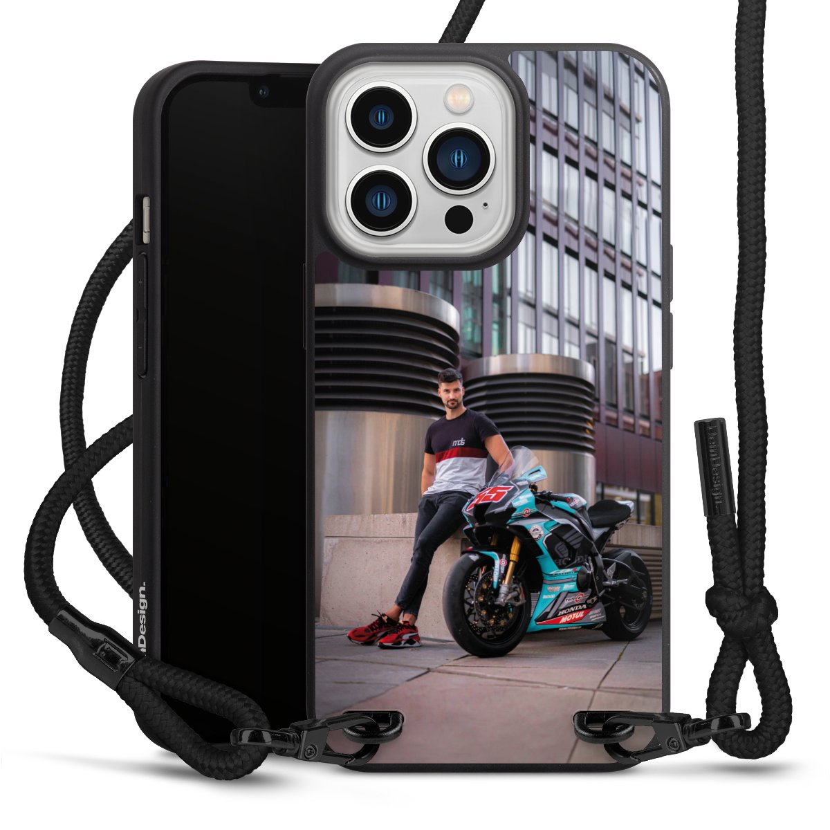 Bei dieser Handyhülle nutzen wir das solide Direktdruck-Verfahren, weshalb der Druckbereich ausschließlich die Rückseite umfasst und der Rand hingegen unbedruckt bleibt. Das Case zum Umhängen kann sowohl unbedruckt, als auch vollflächig oder partiell bedruckt bestellt werden. Wähle für Dein Design entweder eines unserer exklusiven Shop-Motive, oder werde kreativ und gestalte Dein Wunschdesign zum Beispiel mit Fotos und Overlays selbst. Designe Dir Dein persönliches Trend-Accessoire und setze ein individuelles Statement auf den Straßen.