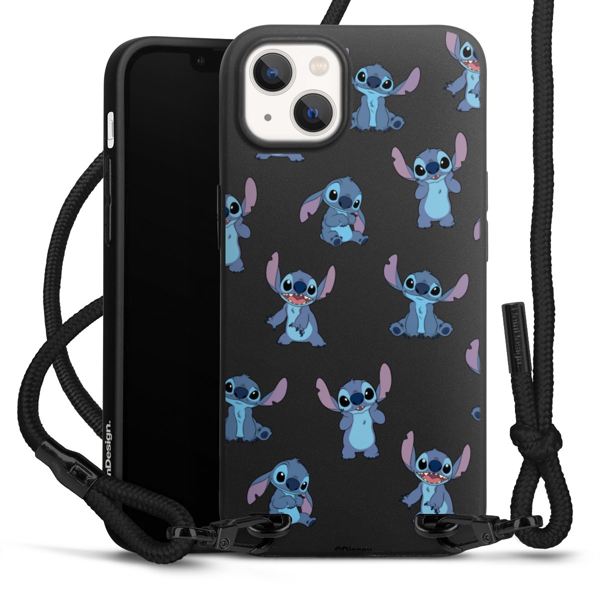Pure Black: Handyhülle, Stoffband und Metalldetails in stylischem Mattschwarz.