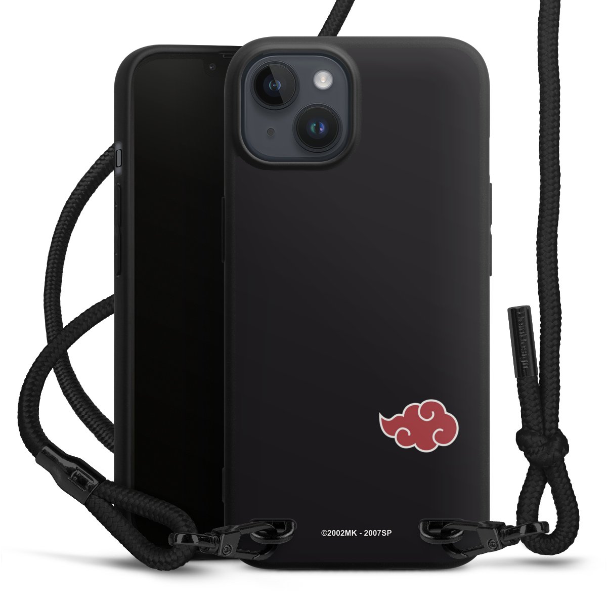 Pure Black: Handyhülle, Stoffband und Metalldetails in stylischem Mattschwarz.