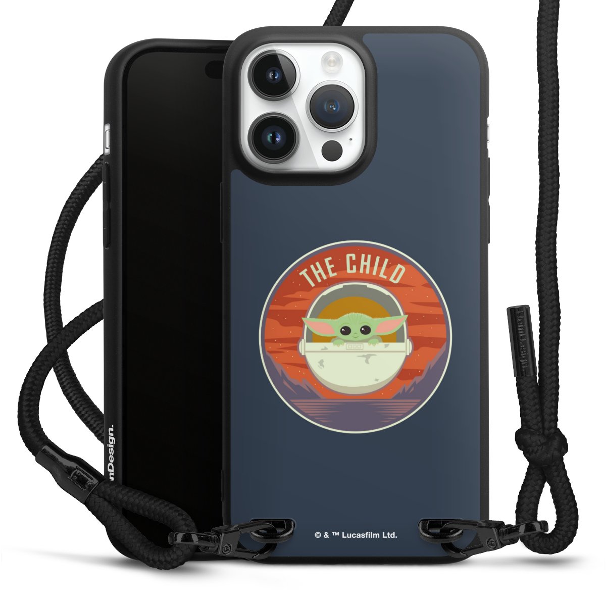 Pure Black: Handyhülle, Stoffband und Metalldetails in stylischem Mattschwarz.