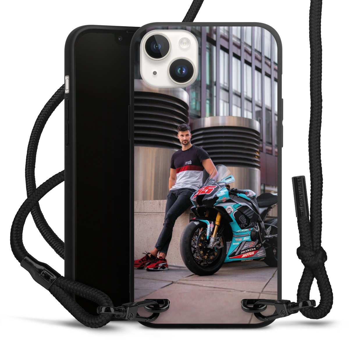 Bei dieser Handyhülle nutzen wir das solide Direktdruck-Verfahren, weshalb der Druckbereich ausschließlich die Rückseite umfasst und der Rand hingegen unbedruckt bleibt. Das Case zum Umhängen kann sowohl unbedruckt, als auch vollflächig oder partiell bedruckt bestellt werden. Wähle für Dein Design entweder eines unserer exklusiven Shop-Motive, oder werde kreativ und gestalte Dein Wunschdesign zum Beispiel mit Fotos und Overlays selbst. Designe Dir Dein persönliches Trend-Accessoire und setze ein individuelles Statement auf den Straßen.