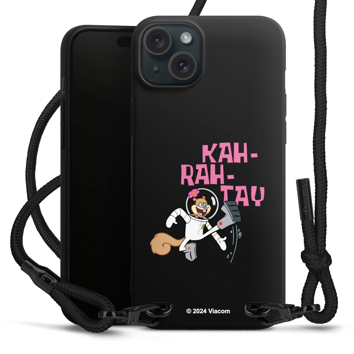 Pure Black: Handyhülle, Stoffband und Metalldetails in stylischem Mattschwarz.