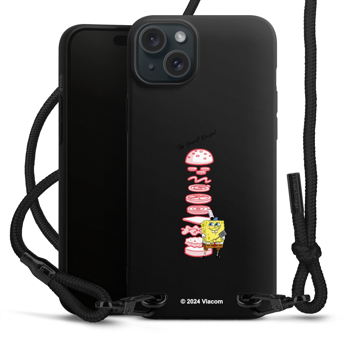 Pure Black: Handyhülle, Stoffband und Metalldetails in stylischem Mattschwarz.