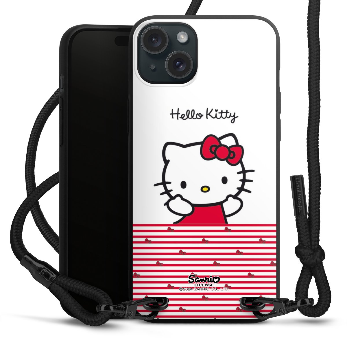 Pure Black: Handyhülle, Stoffband und Metalldetails in stylischem Mattschwarz.