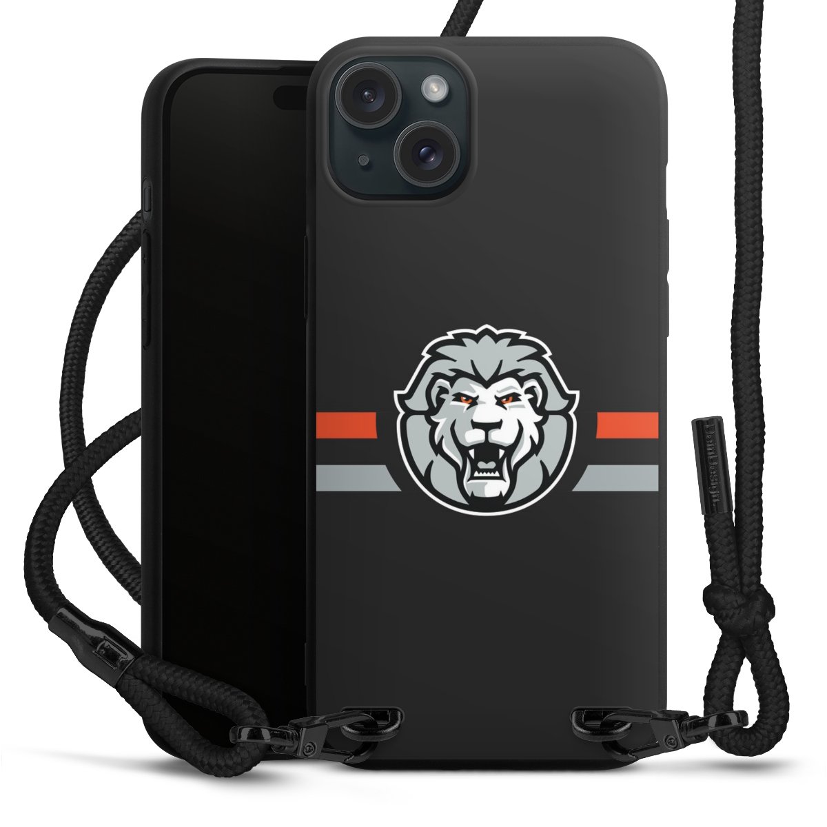 Pure Black: Handyhülle, Stoffband und Metalldetails in stylischem Mattschwarz.