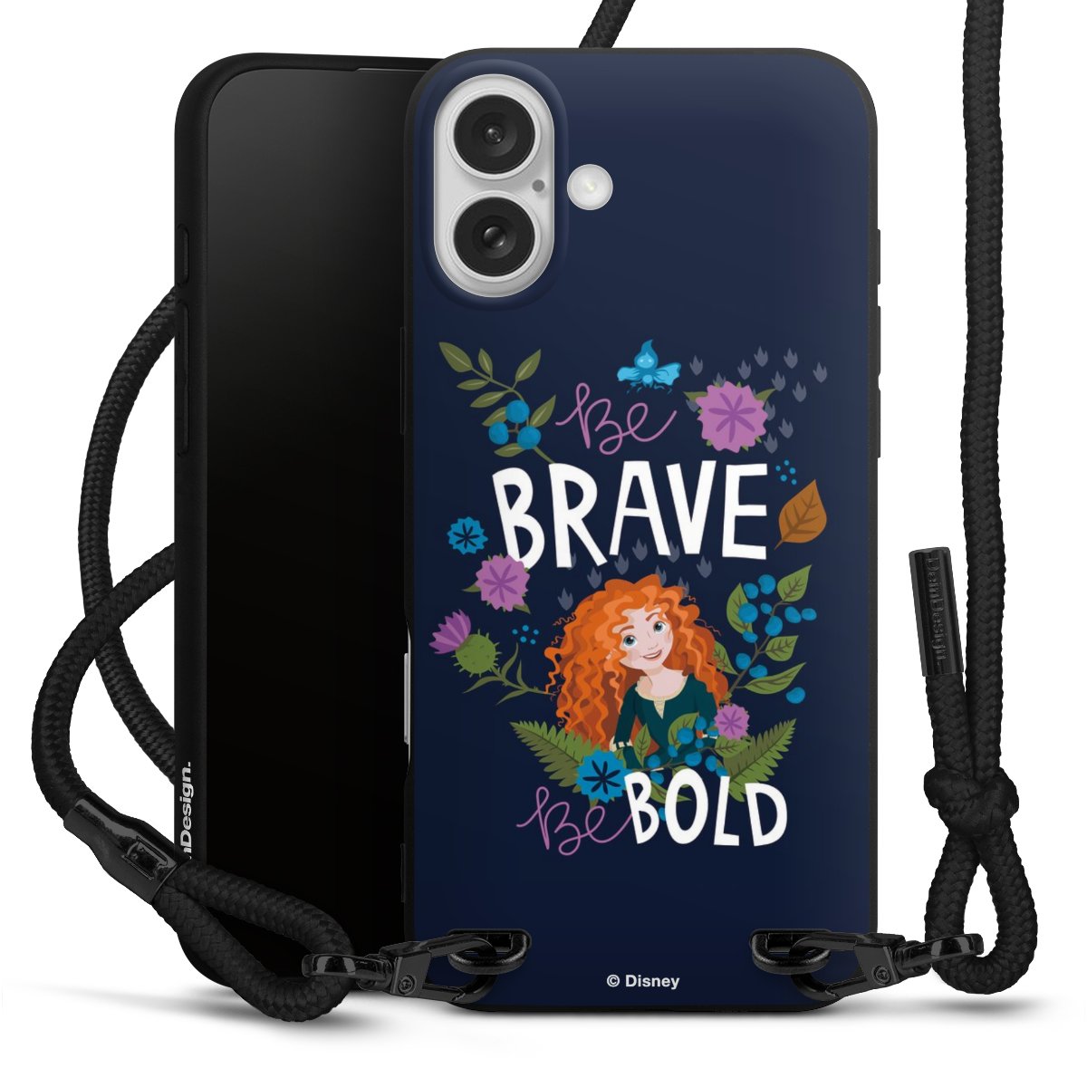 Pure Black: Handyhülle, Stoffband und Metalldetails in stylischem Mattschwarz.