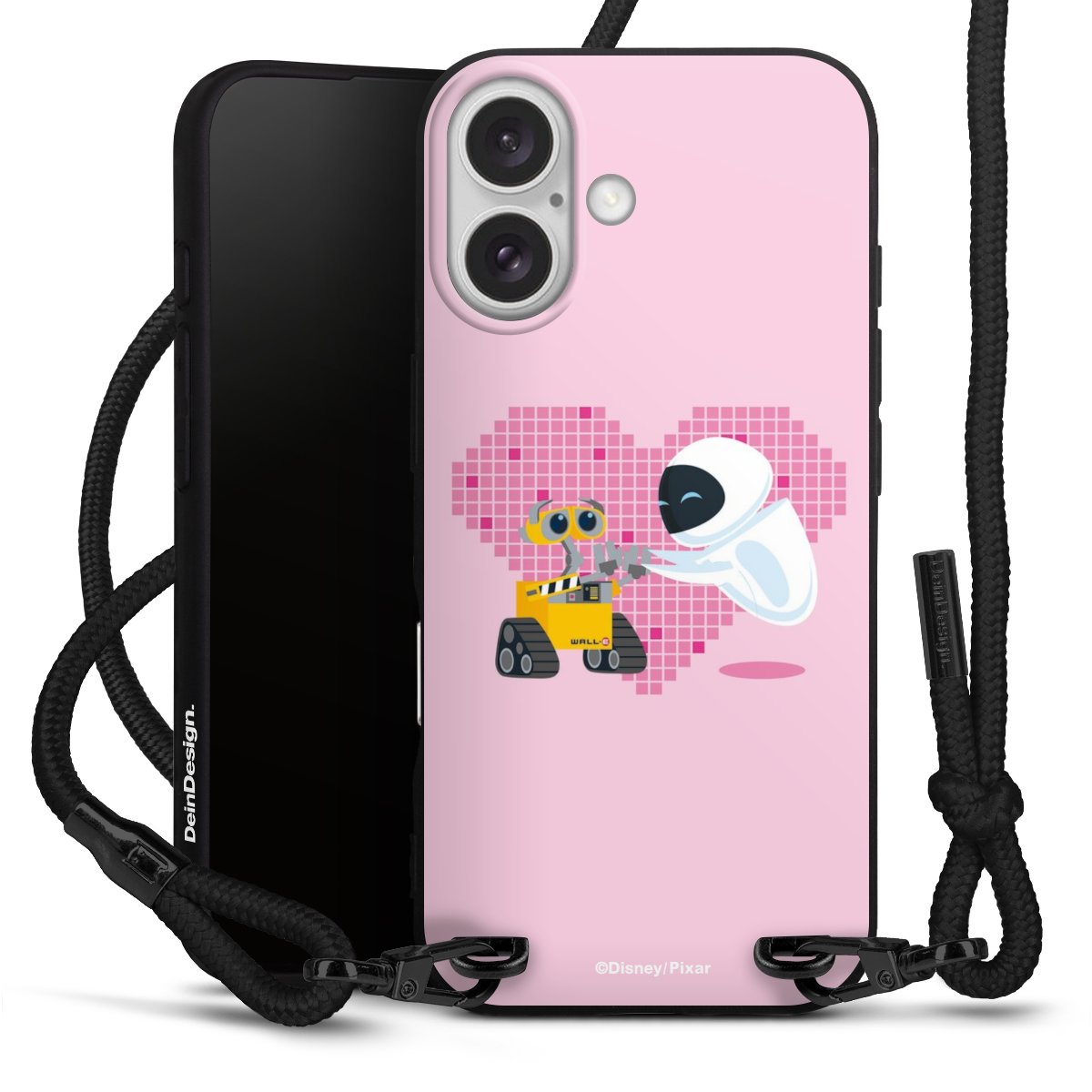 Pure Black: Handyhülle, Stoffband und Metalldetails in stylischem Mattschwarz.