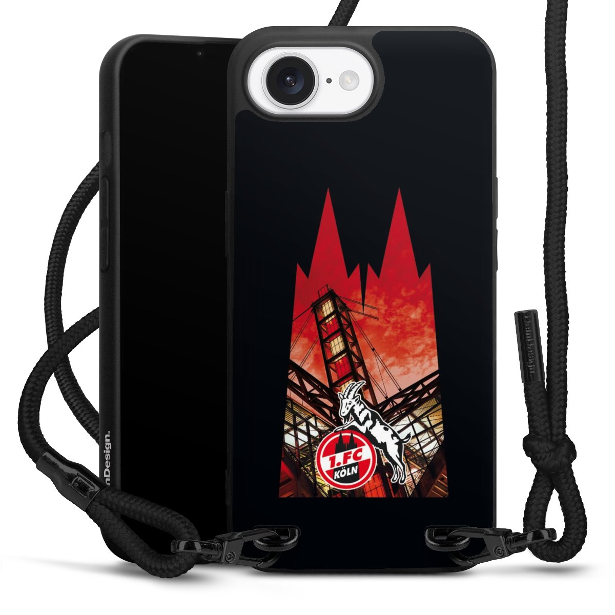 Pure Black: Handyhülle, Stoffband und Metalldetails in stylischem Mattschwarz.