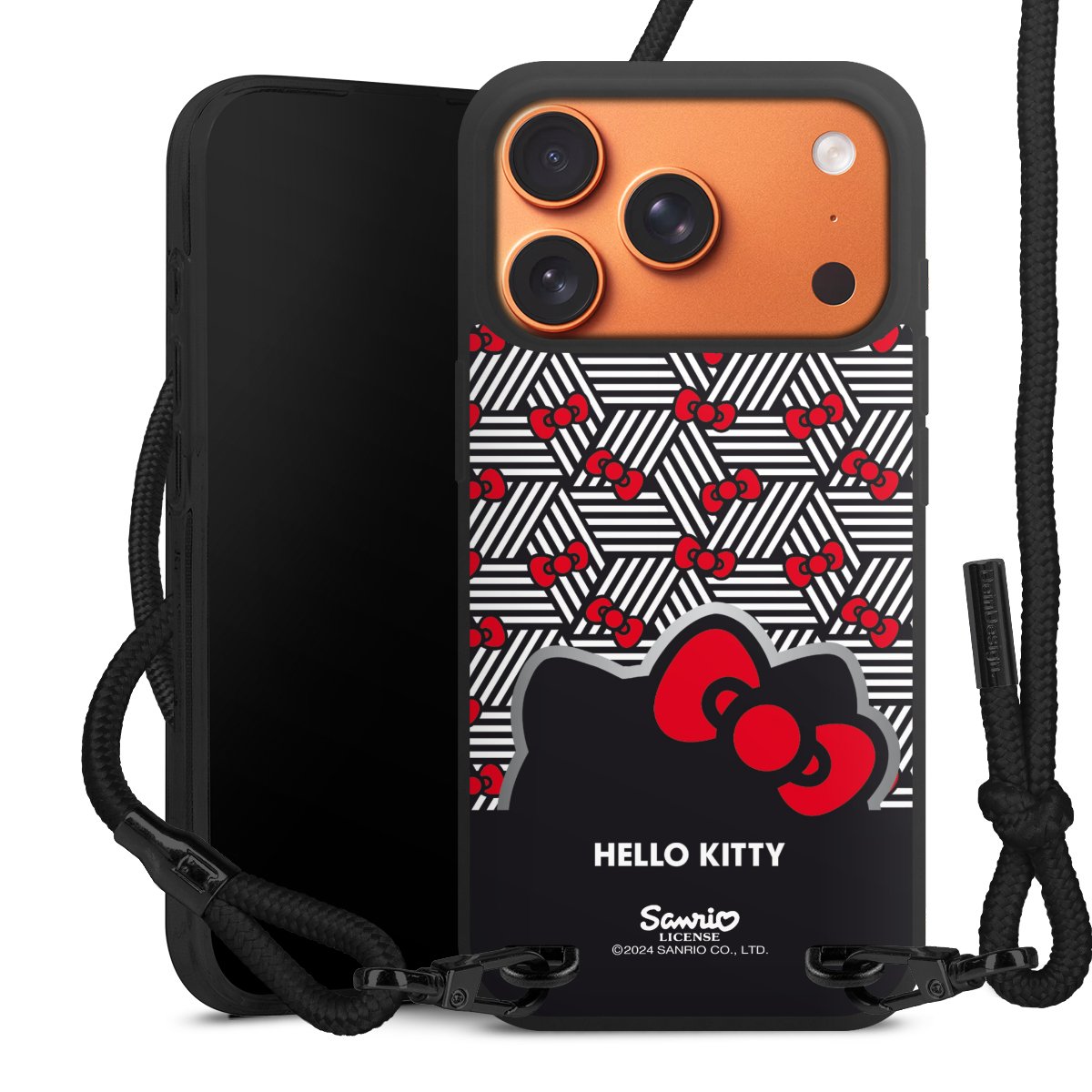 Pure Black: Handyhülle, Stoffband und Metalldetails in stylischem Mattschwarz.