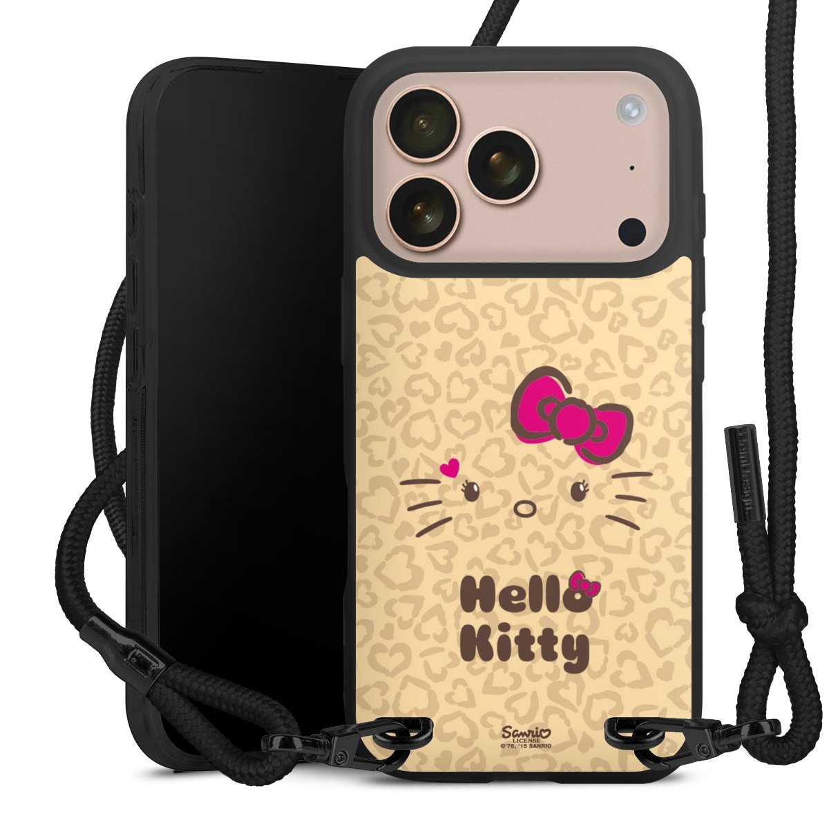 Pure Black: Handyhülle, Stoffband und Metalldetails in stylischem Mattschwarz.