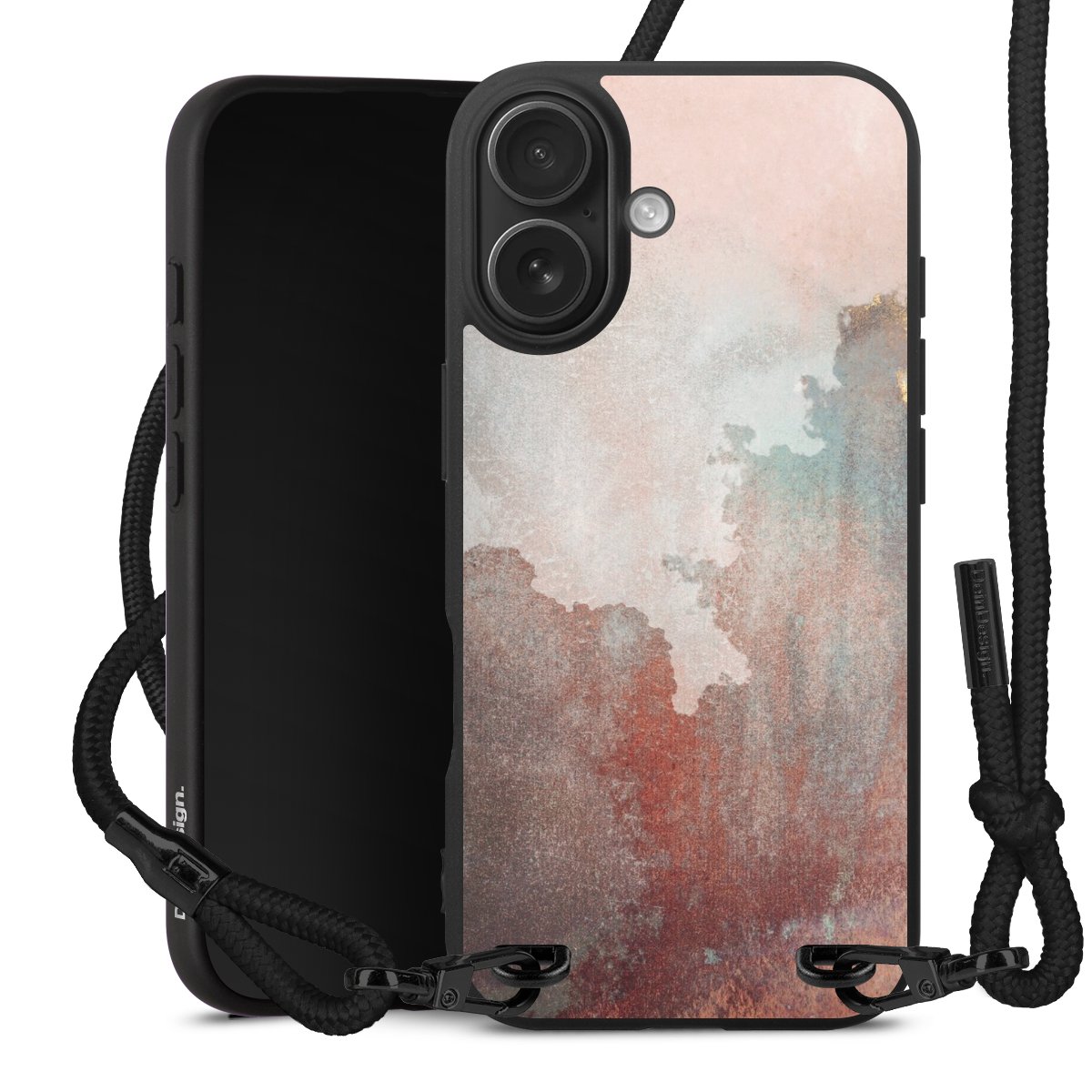 Pure Black: Handyhülle, Stoffband und Metalldetails in stylischem Mattschwarz.