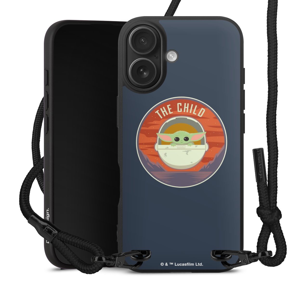 Pure Black: Handyhülle, Stoffband und Metalldetails in stylischem Mattschwarz.