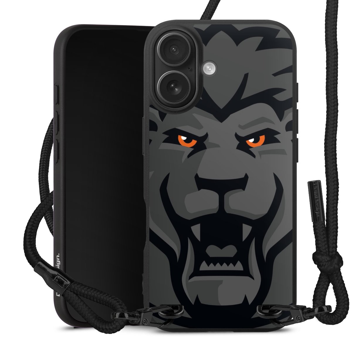 Pure Black: Handyhülle, Stoffband und Metalldetails in stylischem Mattschwarz.