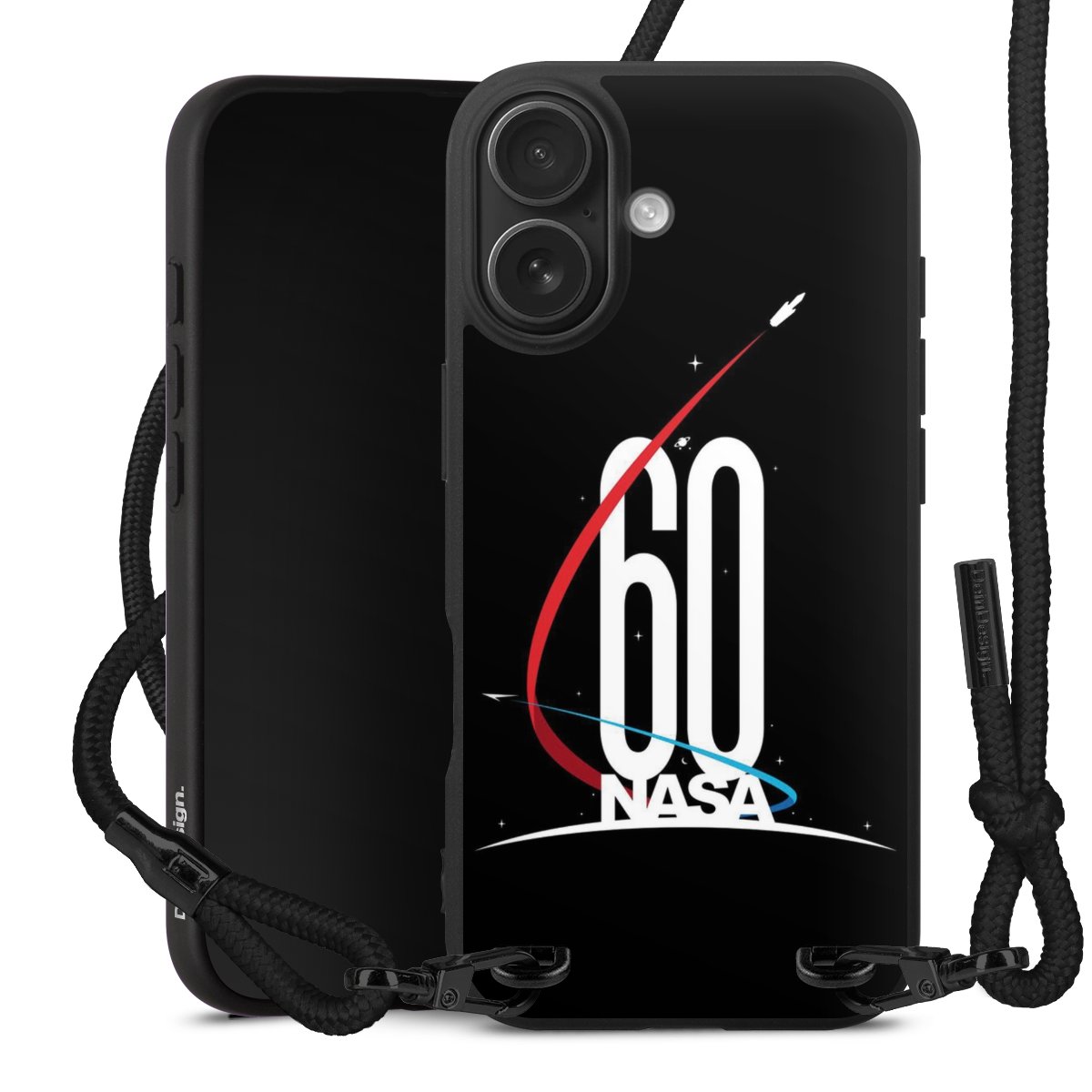 Pure Black: Handyhülle, Stoffband und Metalldetails in stylischem Mattschwarz.