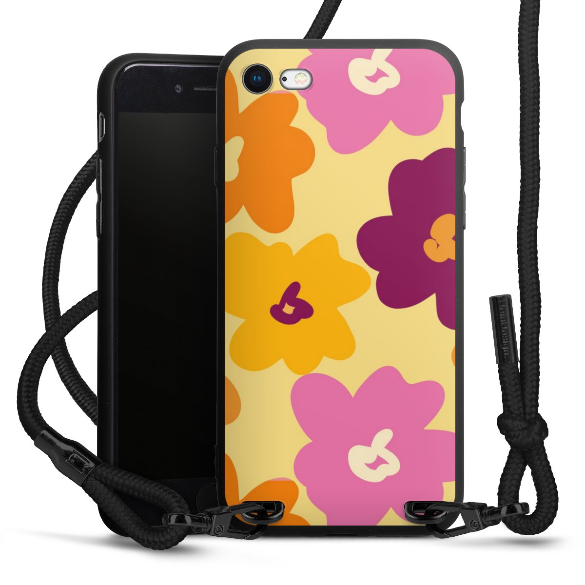 Die mattschwarze Silikonhülle besteht aus flexiblen TPU (thermoplastisches Polyurethan) und bietet robusten Schutz. Durch das langlebige, bruchsichere Material ist die Hülle biegsam und formbeständig zugleich. Die matte Oberfläche lässt Dein Design besser zur Geltung kommen und ist weniger anfällig für Fingerabdrücke und Schmutz. Das stylische Trend-Accessoire liegt griffig in der Hand und wird optimal von der Handykette aus Stoff (Polyester) ergänzt. Das geflochtene Stoffband ist ca. 1,70 Meter lang mit einem Durchmesser von ca. 0,5cm. Aufgrund der besonderen Knotentechnik ist das Band durch einfaches Ziehen in der Länge verstellbar. Als kleines i-Tüpfelchen haben wir das Band mit schicken Metall-Verschlüssen in Mattschwarz versehen.