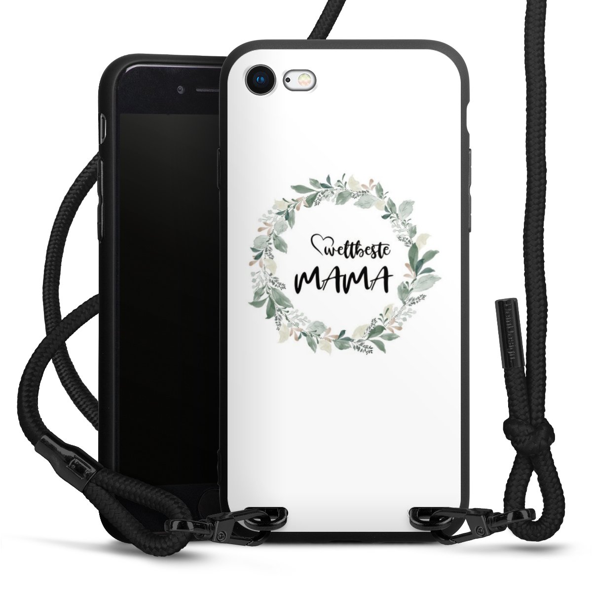 Die mattschwarze Silikonhülle besteht aus flexiblen TPU (thermoplastisches Polyurethan) und bietet robusten Schutz. Durch das langlebige, bruchsichere Material ist die Hülle biegsam und formbeständig zugleich. Die matte Oberfläche lässt Dein Design besser zur Geltung kommen und ist weniger anfällig für Fingerabdrücke und Schmutz. Das stylische Trend-Accessoire liegt griffig in der Hand und wird optimal von der Handykette aus Stoff (Polyester) ergänzt. Das geflochtene Stoffband ist ca. 1,70 Meter lang mit einem Durchmesser von ca. 0,5cm. Aufgrund der besonderen Knotentechnik ist das Band durch einfaches Ziehen in der Länge verstellbar. Als kleines i-Tüpfelchen haben wir das Band mit schicken Metall-Verschlüssen in Mattschwarz versehen.