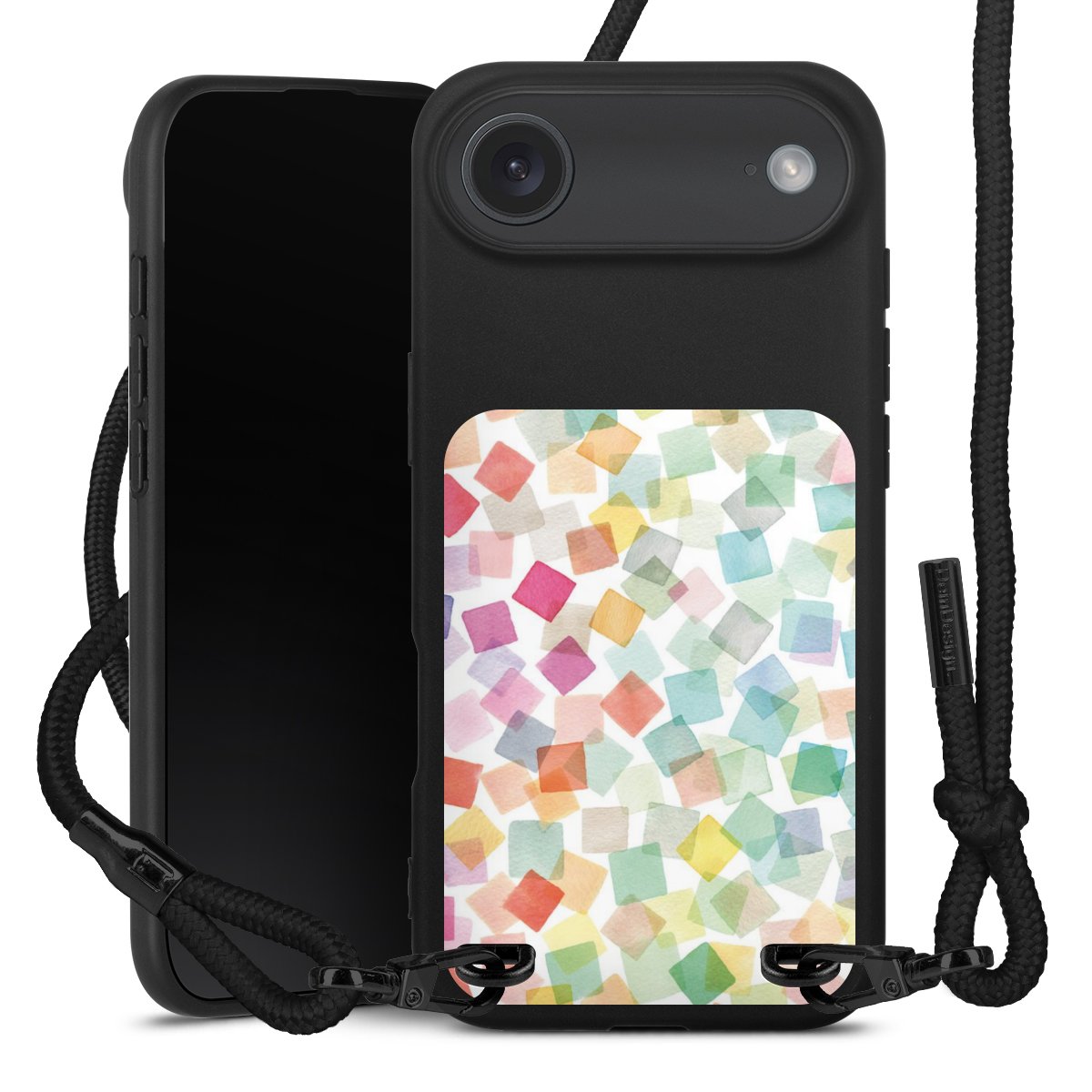 Bei dieser Handyhülle nutzen wir das solide Direktdruck-Verfahren, weshalb der Druckbereich ausschließlich die Rückseite umfasst und der Rand hingegen unbedruckt bleibt. Das Case zum Umhängen kann sowohl unbedruckt, als auch vollflächig oder partiell bedruckt bestellt werden. Wähle für Dein Design entweder eines unserer exklusiven Shop-Motive, oder werde kreativ und gestalte Dein Wunschdesign zum Beispiel mit Fotos und Overlays selbst. Designe Dir Dein persönliches Trend-Accessoire und setze ein individuelles Statement auf den Straßen.