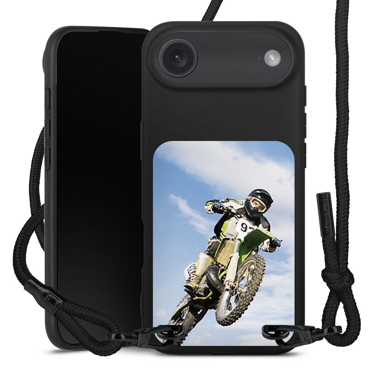 Bei dieser Handyhülle nutzen wir das solide Direktdruck-Verfahren, weshalb der Druckbereich ausschließlich die Rückseite umfasst und der Rand hingegen unbedruckt bleibt. Das Case zum Umhängen kann sowohl unbedruckt, als auch vollflächig oder partiell bedruckt bestellt werden. Wähle für Dein Design entweder eines unserer exklusiven Shop-Motive, oder werde kreativ und gestalte Dein Wunschdesign zum Beispiel mit Fotos und Overlays selbst. Designe Dir Dein persönliches Trend-Accessoire und setze ein individuelles Statement auf den Straßen.