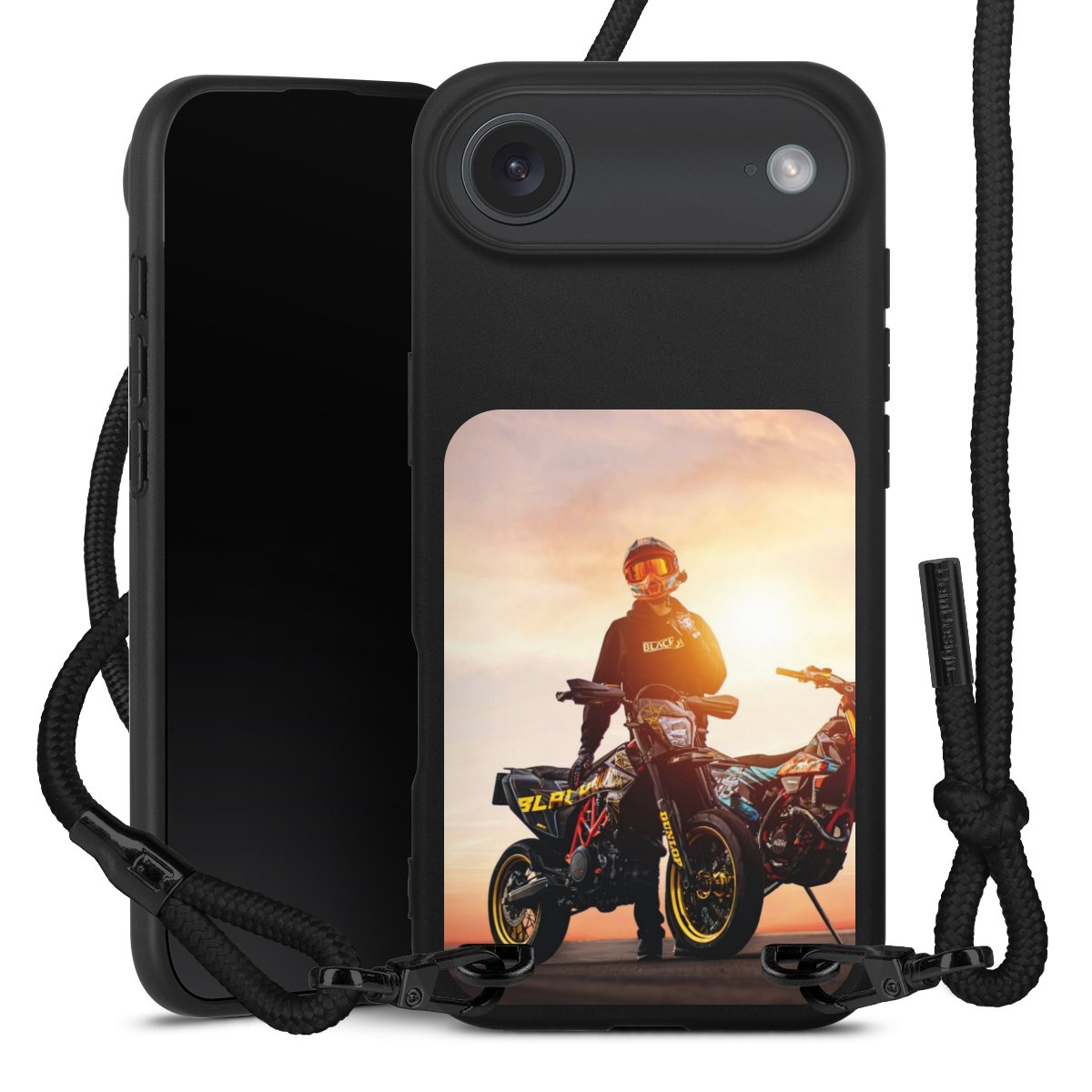 Bei dieser Handyhülle nutzen wir das solide Direktdruck-Verfahren, weshalb der Druckbereich ausschließlich die Rückseite umfasst und der Rand hingegen unbedruckt bleibt. Das Case zum Umhängen kann sowohl unbedruckt, als auch vollflächig oder partiell bedruckt bestellt werden. Wähle für Dein Design entweder eines unserer exklusiven Shop-Motive, oder werde kreativ und gestalte Dein Wunschdesign zum Beispiel mit Fotos und Overlays selbst. Designe Dir Dein persönliches Trend-Accessoire und setze ein individuelles Statement auf den Straßen.