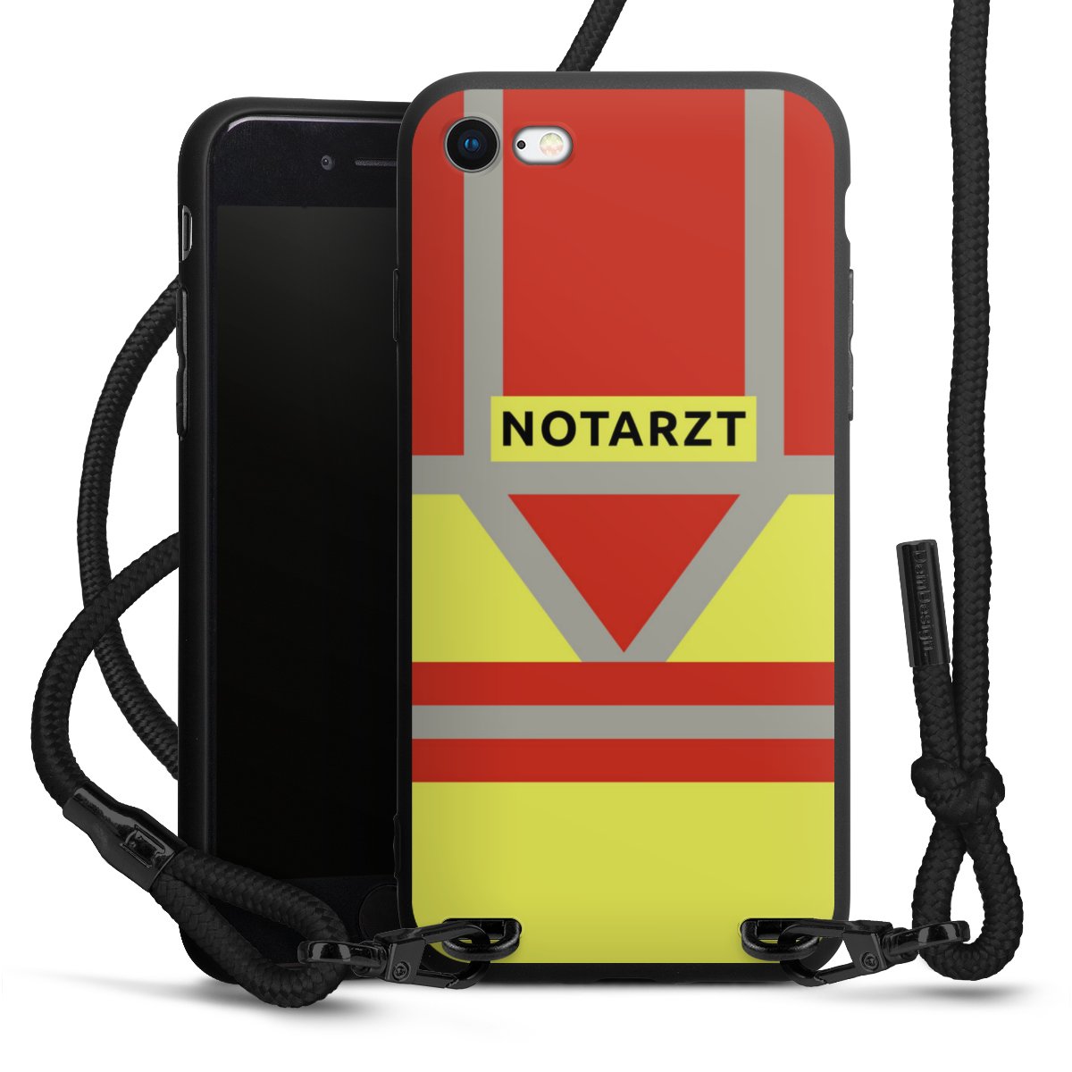Die mattschwarze Silikonhülle besteht aus flexiblen TPU (thermoplastisches Polyurethan) und bietet robusten Schutz. Durch das langlebige, bruchsichere Material ist die Hülle biegsam und formbeständig zugleich. Die matte Oberfläche lässt Dein Design besser zur Geltung kommen und ist weniger anfällig für Fingerabdrücke und Schmutz. Das stylische Trend-Accessoire liegt griffig in der Hand und wird optimal von der Handykette aus Stoff (Polyester) ergänzt. Das geflochtene Stoffband ist ca. 1,70 Meter lang mit einem Durchmesser von ca. 0,5cm. Aufgrund der besonderen Knotentechnik ist das Band durch einfaches Ziehen in der Länge verstellbar. Als kleines i-Tüpfelchen haben wir das Band mit schicken Metall-Verschlüssen in Mattschwarz versehen.