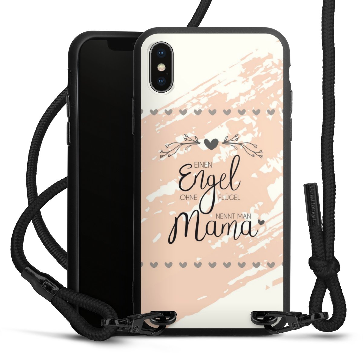 Pure Black: Handyhülle, Stoffband und Metalldetails in stylischem Mattschwarz.