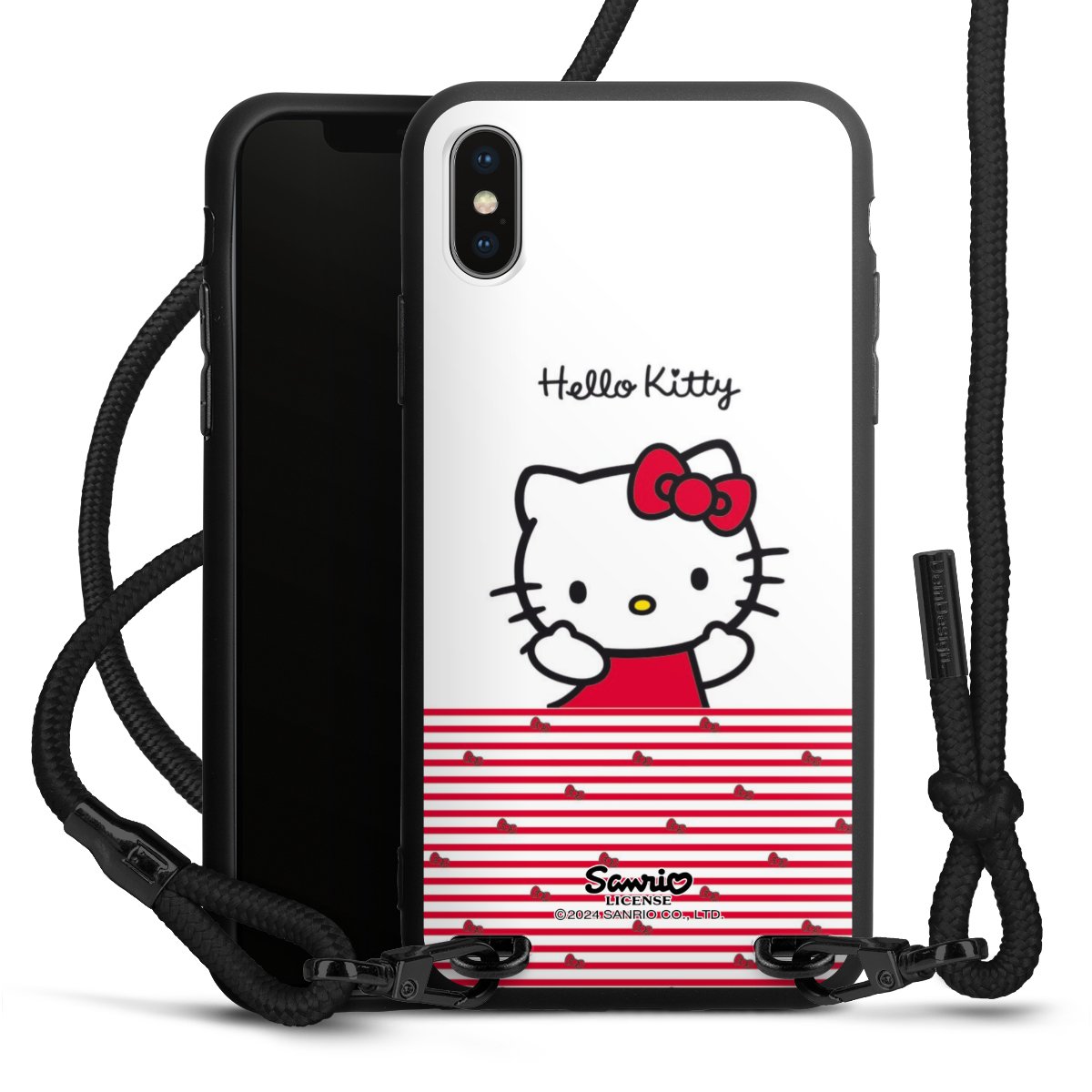 Pure Black: Handyhülle, Stoffband und Metalldetails in stylischem Mattschwarz.