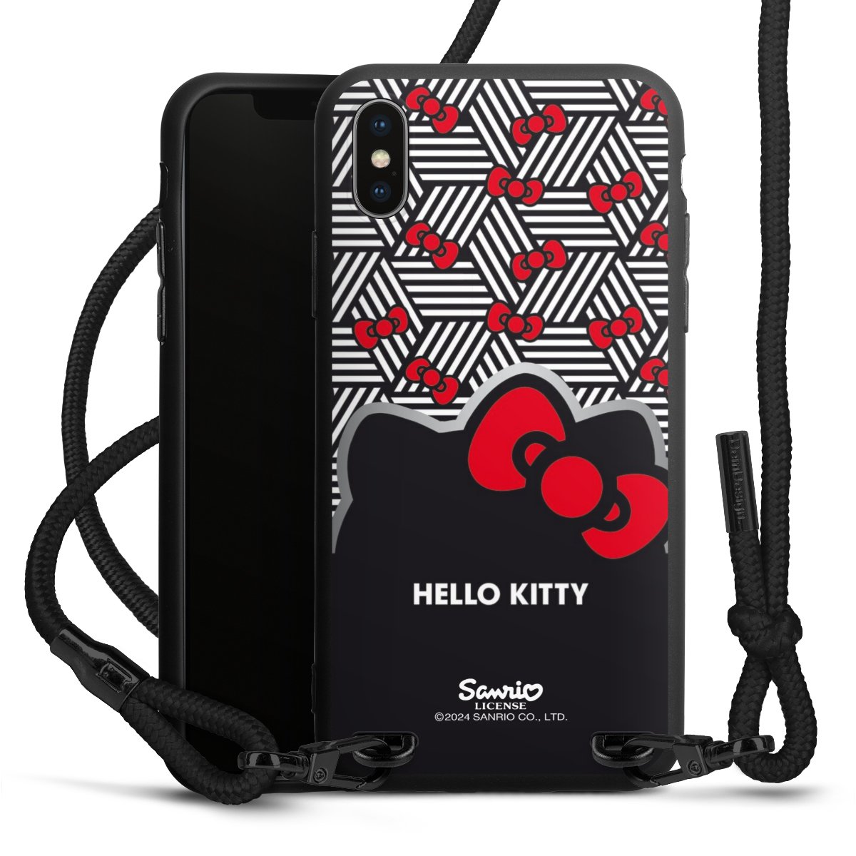 Pure Black: Handyhülle, Stoffband und Metalldetails in stylischem Mattschwarz.