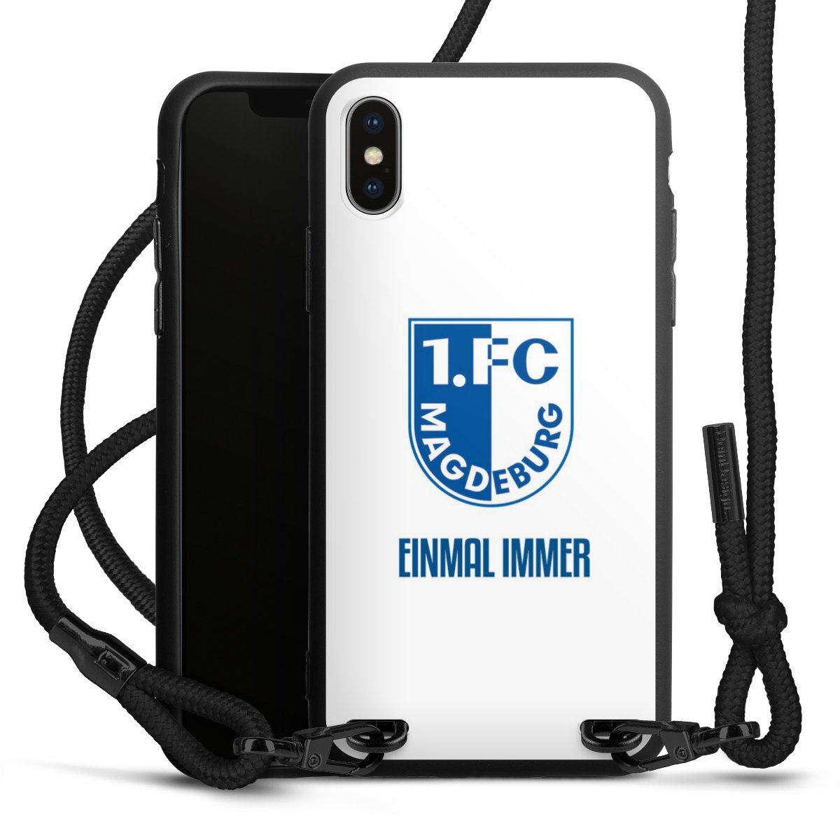 Die mattschwarze Silikonhülle besteht aus flexiblen TPU (thermoplastisches Polyurethan) und bietet robusten Schutz. Durch das langlebige, bruchsichere Material ist die Hülle biegsam und formbeständig zugleich. Die matte Oberfläche lässt Dein Design besser zur Geltung kommen und ist weniger anfällig für Fingerabdrücke und Schmutz. Das stylische Trend-Accessoire liegt griffig in der Hand und wird optimal von der Handykette aus Stoff (Polyester) ergänzt. Das geflochtene Stoffband ist ca. 1,70 Meter lang mit einem Durchmesser von ca. 0,5cm. Aufgrund der besonderen Knotentechnik ist das Band durch einfaches Ziehen in der Länge verstellbar. Als kleines i-Tüpfelchen haben wir das Band mit schicken Metall-Verschlüssen in Mattschwarz versehen.