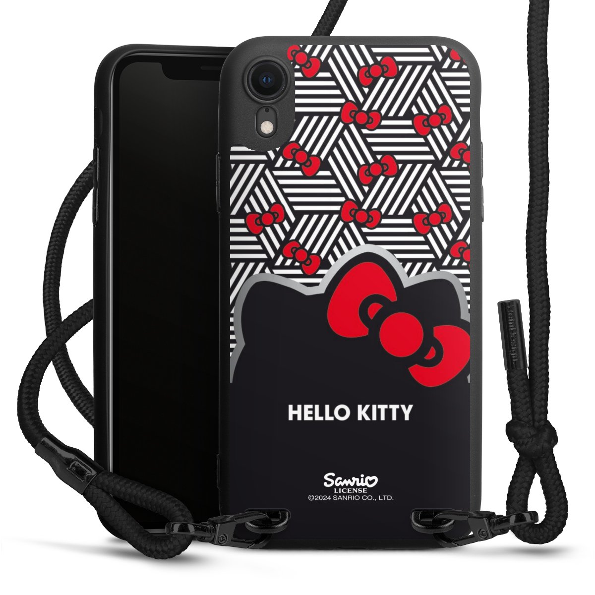 Pure Black: Handyhülle, Stoffband und Metalldetails in stylischem Mattschwarz.