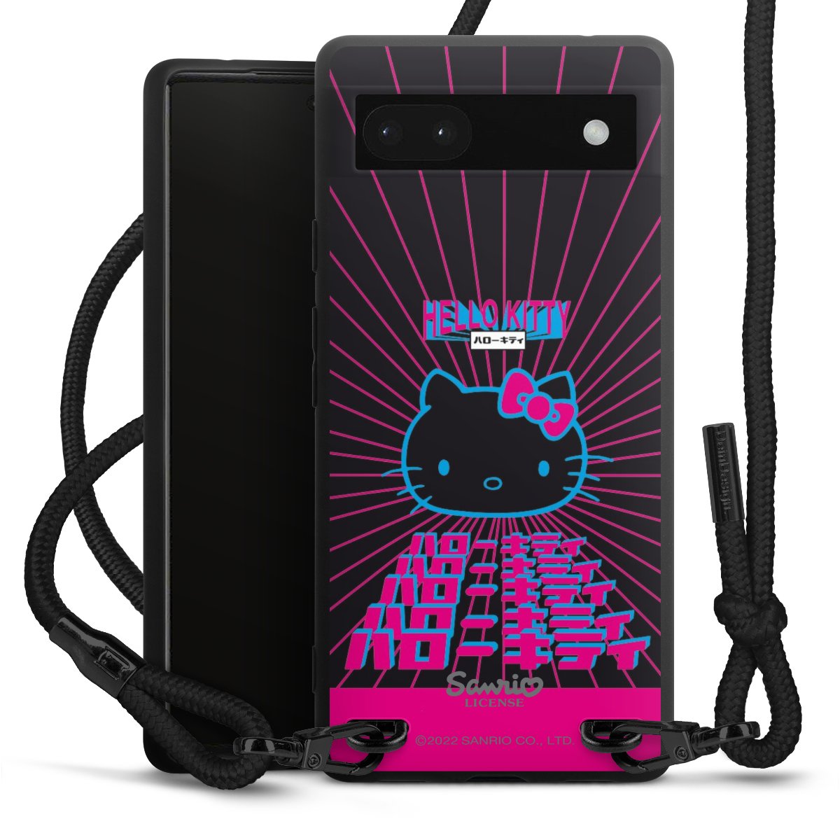 Pure Black: Handyhülle, Stoffband und Metalldetails in stylischem Mattschwarz.