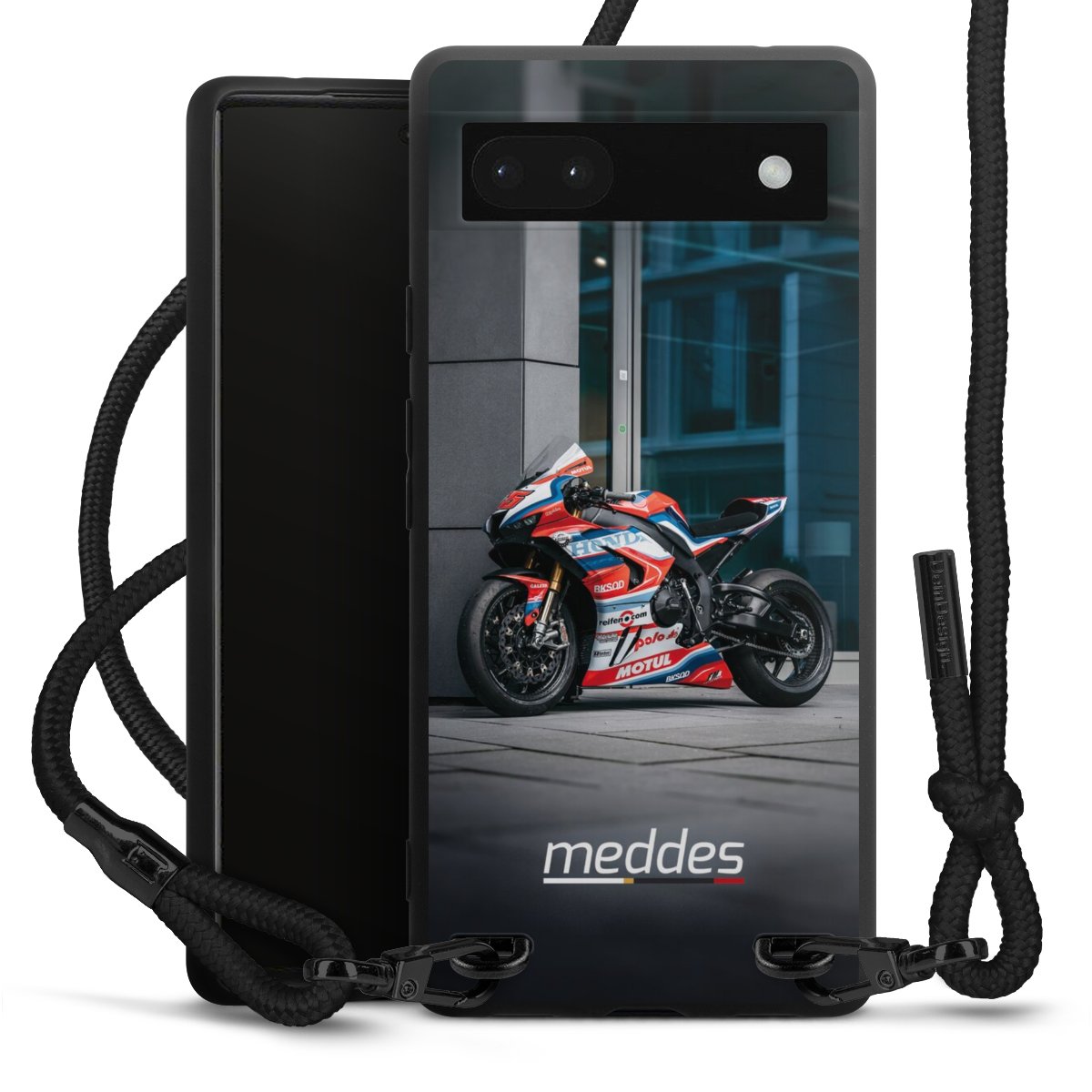 Bei dieser Handyhülle nutzen wir das solide Direktdruck-Verfahren, weshalb der Druckbereich ausschließlich die Rückseite umfasst und der Rand hingegen unbedruckt bleibt. Das Case zum Umhängen kann sowohl unbedruckt, als auch vollflächig oder partiell bedruckt bestellt werden. Wähle für Dein Design entweder eines unserer exklusiven Shop-Motive, oder werde kreativ und gestalte Dein Wunschdesign zum Beispiel mit Fotos und Overlays selbst. Designe Dir Dein persönliches Trend-Accessoire und setze ein individuelles Statement auf den Straßen.