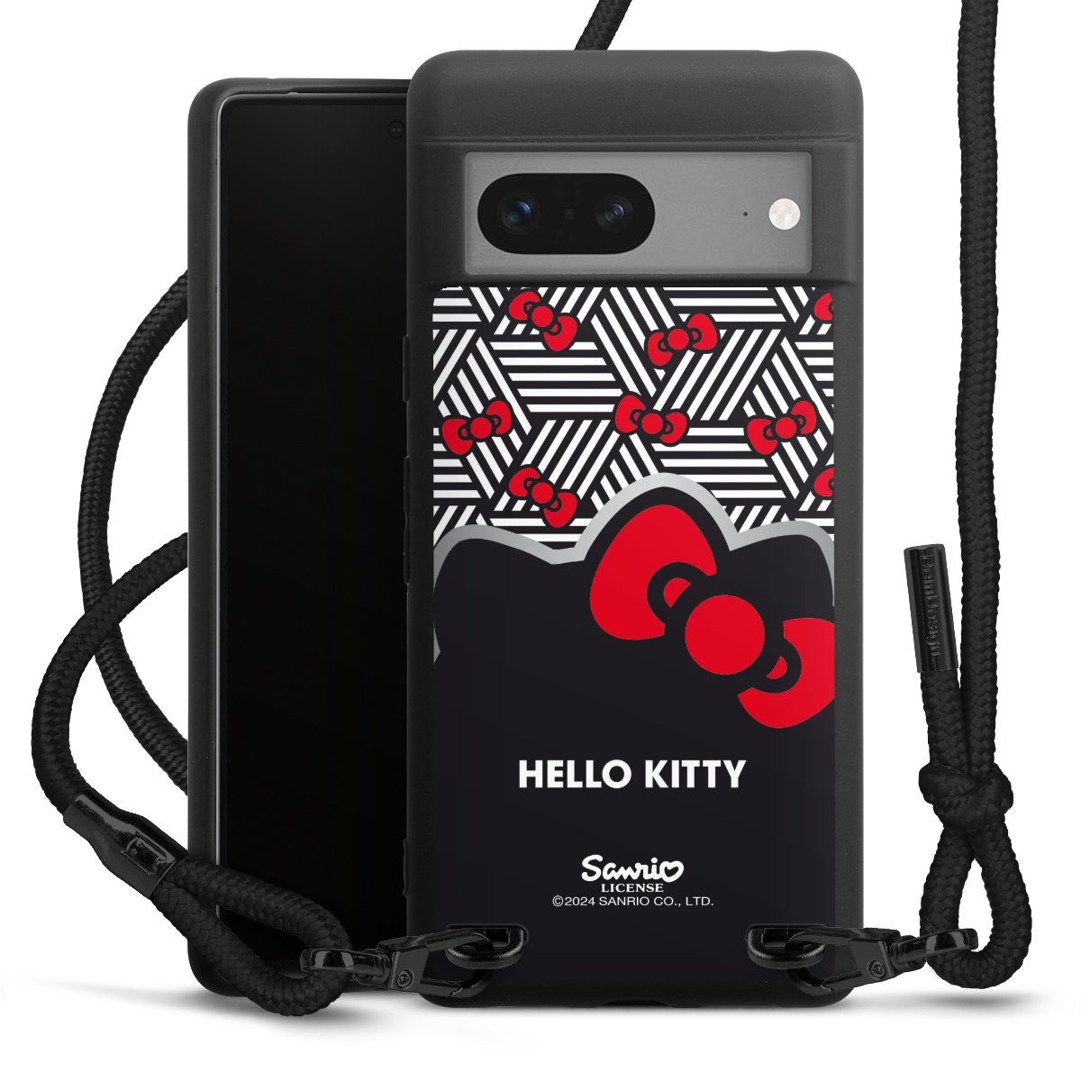 Pure Black: Handyhülle, Stoffband und Metalldetails in stylischem Mattschwarz.