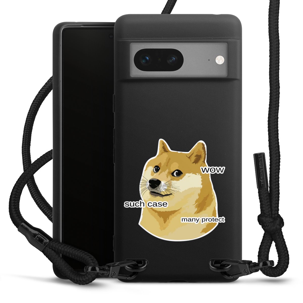 Die mattschwarze Silikonhülle besteht aus flexiblen TPU (thermoplastisches Polyurethan) und bietet robusten Schutz. Durch das langlebige, bruchsichere Material ist die Hülle biegsam und formbeständig zugleich. Die matte Oberfläche lässt Dein Design besser zur Geltung kommen und ist weniger anfällig für Fingerabdrücke und Schmutz. Das stylische Trend-Accessoire liegt griffig in der Hand und wird optimal von der Handykette aus Stoff (Polyester) ergänzt. Das geflochtene Stoffband ist ca. 1,70 Meter lang mit einem Durchmesser von ca. 0,5cm. Aufgrund der besonderen Knotentechnik ist das Band durch einfaches Ziehen in der Länge verstellbar. Als kleines i-Tüpfelchen haben wir das Band mit schicken Metall-Verschlüssen in Mattschwarz versehen.
