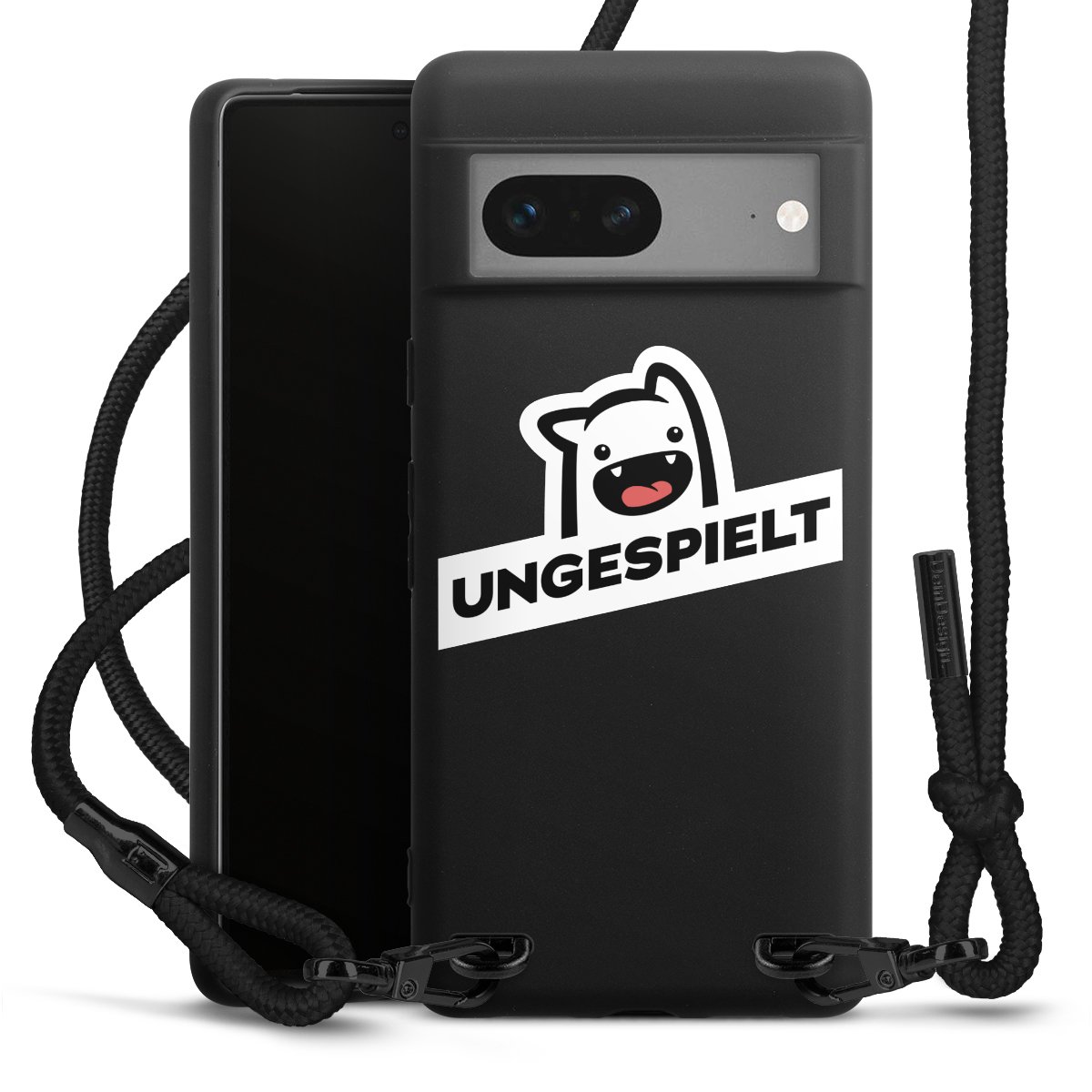 Die mattschwarze Silikonhülle besteht aus flexiblen TPU (thermoplastisches Polyurethan) und bietet robusten Schutz. Durch das langlebige, bruchsichere Material ist die Hülle biegsam und formbeständig zugleich. Die matte Oberfläche lässt Dein Design besser zur Geltung kommen und ist weniger anfällig für Fingerabdrücke und Schmutz. Das stylische Trend-Accessoire liegt griffig in der Hand und wird optimal von der Handykette aus Stoff (Polyester) ergänzt. Das geflochtene Stoffband ist ca. 1,70 Meter lang mit einem Durchmesser von ca. 0,5cm. Aufgrund der besonderen Knotentechnik ist das Band durch einfaches Ziehen in der Länge verstellbar. Als kleines i-Tüpfelchen haben wir das Band mit schicken Metall-Verschlüssen in Mattschwarz versehen.