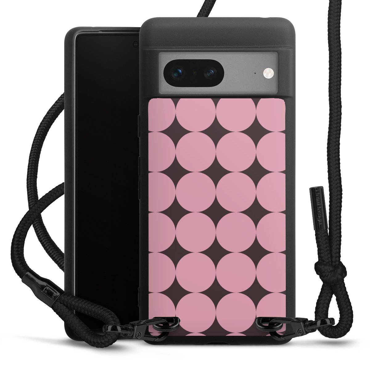 Die mattschwarze Silikonhülle besteht aus flexiblen TPU (thermoplastisches Polyurethan) und bietet robusten Schutz. Durch das langlebige, bruchsichere Material ist die Hülle biegsam und formbeständig zugleich. Die matte Oberfläche lässt Dein Design besser zur Geltung kommen und ist weniger anfällig für Fingerabdrücke und Schmutz. Das stylische Trend-Accessoire liegt griffig in der Hand und wird optimal von der Handykette aus Stoff (Polyester) ergänzt. Das geflochtene Stoffband ist ca. 1,70 Meter lang mit einem Durchmesser von ca. 0,5cm. Aufgrund der besonderen Knotentechnik ist das Band durch einfaches Ziehen in der Länge verstellbar. Als kleines i-Tüpfelchen haben wir das Band mit schicken Metall-Verschlüssen in Mattschwarz versehen.