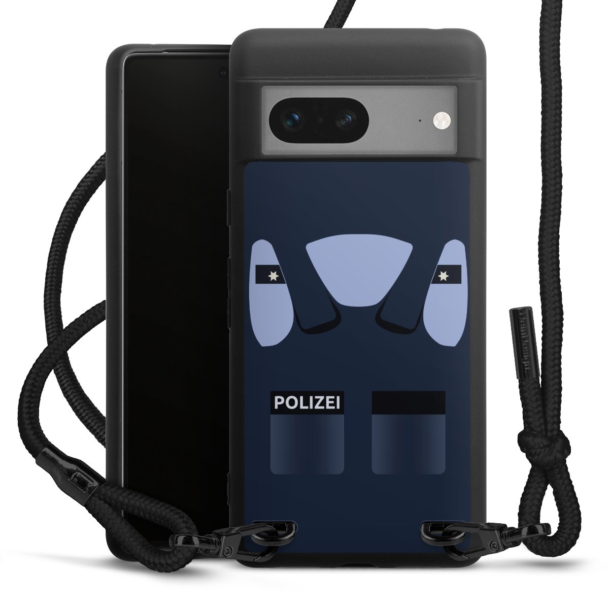 Die mattschwarze Silikonhülle besteht aus flexiblen TPU (thermoplastisches Polyurethan) und bietet robusten Schutz. Durch das langlebige, bruchsichere Material ist die Hülle biegsam und formbeständig zugleich. Die matte Oberfläche lässt Dein Design besser zur Geltung kommen und ist weniger anfällig für Fingerabdrücke und Schmutz. Das stylische Trend-Accessoire liegt griffig in der Hand und wird optimal von der Handykette aus Stoff (Polyester) ergänzt. Das geflochtene Stoffband ist ca. 1,70 Meter lang mit einem Durchmesser von ca. 0,5cm. Aufgrund der besonderen Knotentechnik ist das Band durch einfaches Ziehen in der Länge verstellbar. Als kleines i-Tüpfelchen haben wir das Band mit schicken Metall-Verschlüssen in Mattschwarz versehen.