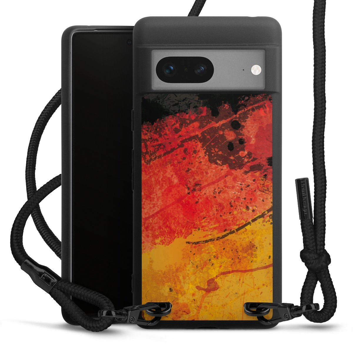 Bei dieser Handyhülle nutzen wir das solide Direktdruck-Verfahren, weshalb der Druckbereich ausschließlich die Rückseite umfasst und der Rand hingegen unbedruckt bleibt. Das Case zum Umhängen kann sowohl unbedruckt, als auch vollflächig oder partiell bedruckt bestellt werden. Wähle für Dein Design entweder eines unserer exklusiven Shop-Motive, oder werde kreativ und gestalte Dein Wunschdesign zum Beispiel mit Fotos und Overlays selbst. Designe Dir Dein persönliches Trend-Accessoire und setze ein individuelles Statement auf den Straßen.