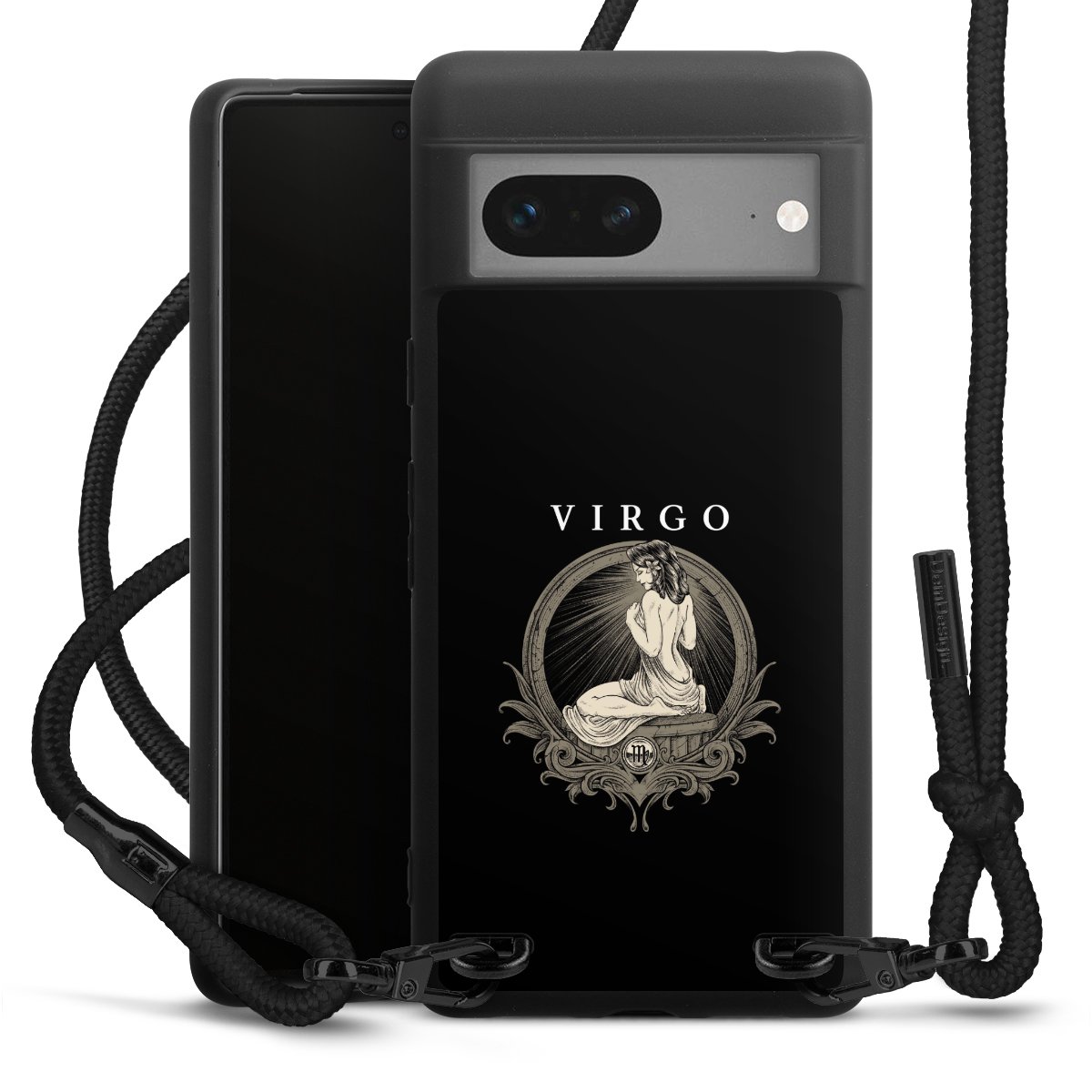 Die mattschwarze Silikonhülle besteht aus flexiblen TPU (thermoplastisches Polyurethan) und bietet robusten Schutz. Durch das langlebige, bruchsichere Material ist die Hülle biegsam und formbeständig zugleich. Die matte Oberfläche lässt Dein Design besser zur Geltung kommen und ist weniger anfällig für Fingerabdrücke und Schmutz. Das stylische Trend-Accessoire liegt griffig in der Hand und wird optimal von der Handykette aus Stoff (Polyester) ergänzt. Das geflochtene Stoffband ist ca. 1,70 Meter lang mit einem Durchmesser von ca. 0,5cm. Aufgrund der besonderen Knotentechnik ist das Band durch einfaches Ziehen in der Länge verstellbar. Als kleines i-Tüpfelchen haben wir das Band mit schicken Metall-Verschlüssen in Mattschwarz versehen.