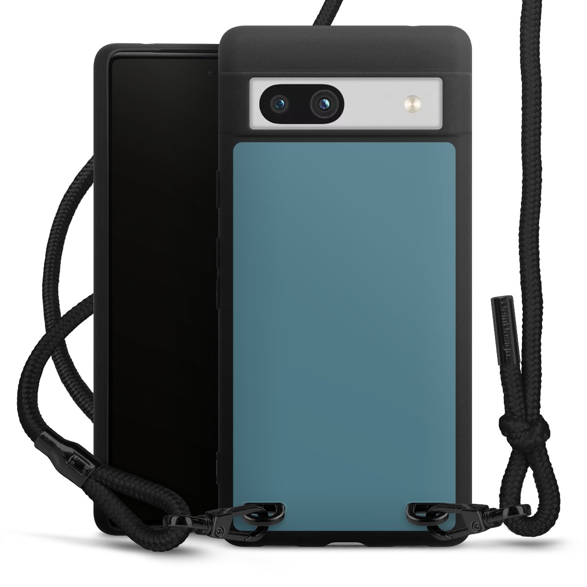 Die mattschwarze Silikonhülle besteht aus flexiblen TPU (thermoplastisches Polyurethan) und bietet robusten Schutz. Durch das langlebige, bruchsichere Material ist die Hülle biegsam und formbeständig zugleich. Die matte Oberfläche lässt Dein Design besser zur Geltung kommen und ist weniger anfällig für Fingerabdrücke und Schmutz. Das stylische Trend-Accessoire liegt griffig in der Hand und wird optimal von der Handykette aus Stoff (Polyester) ergänzt. Das geflochtene Stoffband ist ca. 1,70 Meter lang mit einem Durchmesser von ca. 0,5cm. Aufgrund der besonderen Knotentechnik ist das Band durch einfaches Ziehen in der Länge verstellbar. Als kleines i-Tüpfelchen haben wir das Band mit schicken Metall-Verschlüssen in Mattschwarz versehen.